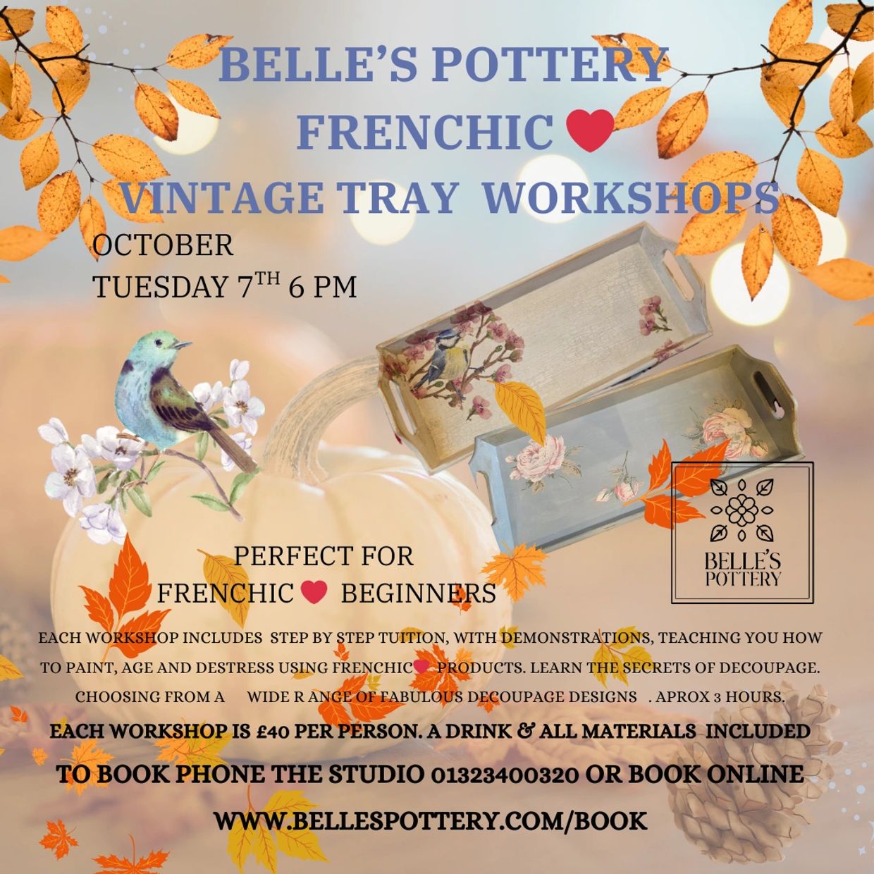Each Workshop includes step by step tuition, with Demonstrations, teaching you Frenchic techniques to paint age and distress using Frenchic productes, You will also learn the art of decoupage.